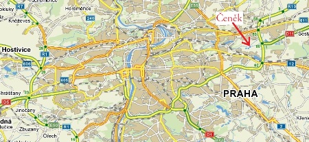 Z Pražského okruhu/Štěrboholské spojky sjedeme v místě sjezdu č. 62 na Český Brod (silnice I. třídy č. 12), ovšem vydáme se po Českobrodské směrem do centra Prahy! Po cca 1400 metrech na první světelné křižovatce odbočíme do ulice Národních hrdinů, podjedeme viadukt a jedeme asi 500 metrů s mírnou zatáčkou vpravo, dokud po pravé straně neuvidíme zámek. Hned za ním odbočíme vlevo do ulice K Zámku a po dalších 100 metrech odbočíme opět vlevo do ulice V Čeňku. Na konci zástavby musíme uhnout vlevo a po chvíli jízdy u zátarasů odbočíme ostře doprava a po zhruba 500 metrech jízdy mezi poli dorázíme k rybníku Čeněk (po pravé straně). V jeho okolí se nachází chatová kolonie.