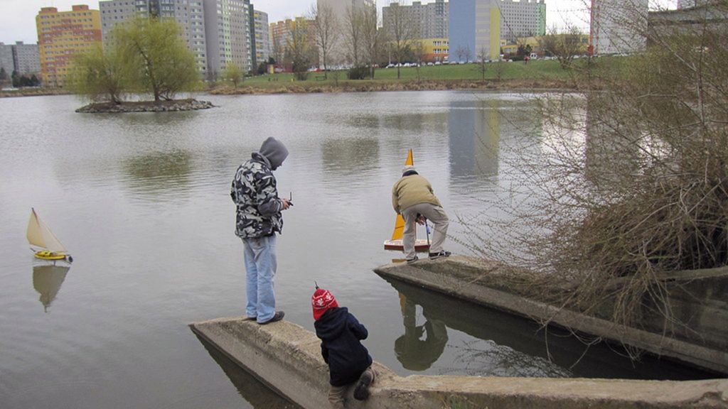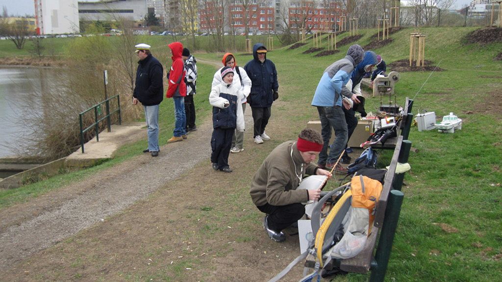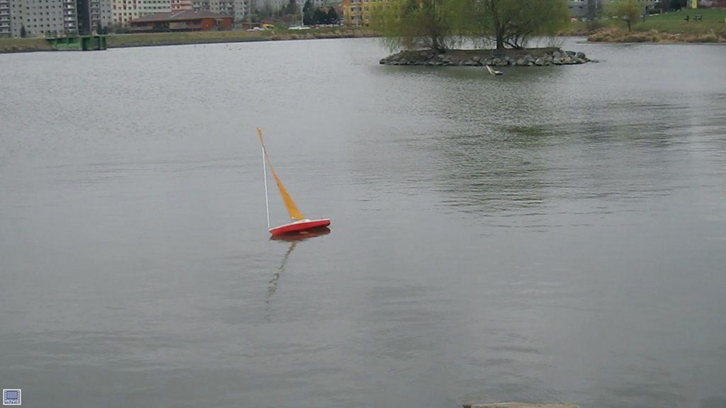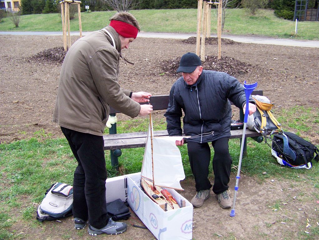 Po rychlém čaji jsem se ve chvíli, kdy déšť trochu ustal, navrátil k vodě, kde už Jindra Culek skládal plachetnici. Jakmile proces dokončil, přišly takové poryvy větru, až musel sundat kosatku. Nádrž byla po zimě ještě trochu upuštěná, a tak se dalo chodit po štěrkové pláži kolem rákosí a pohodlněji vyzdvihovat zatoulané modely. Absence záchranného plavidla se jednomu modelu stala téměř osudnou, nicméně naštěstí si to po převržení nenamířil rovnou ke dnu a bylo možné jej pracně dostrkat.