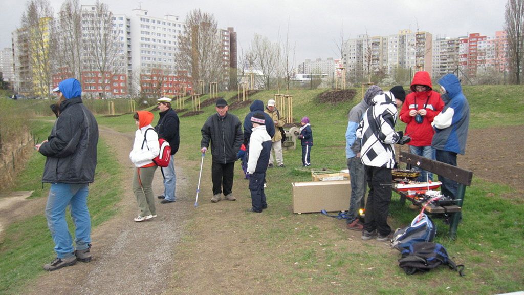 , bylo bláhové zkoušet někam zavěsit kolíčkovou tabuli, a tak se přítomní obešli bez kolíčků. Co jsem měl možnost vidět, tak to nebyl žádný velký problém, neboť plejáda modelářů přešla na 2,4 GHz a ti zbylí se snadno domluvili![]()