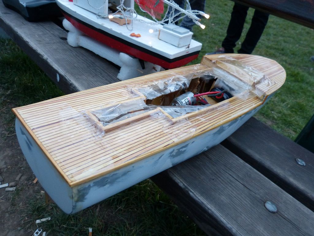 Začnu u svých - vzal jsem Springera s vanou a Footy. Footy spíše s vidinou, že foukat nebude. Jelikož foukalo značně, musel jsem jí zanechat na břehu vleže a plachtu zatížit kufrem vysílače... a jak si tak se Springerem tlačím vanu, najednou Dadův Puffer nejede. I dotlačil jsem ho pracně ke břehu... Druhý pokus dopadl podobně.