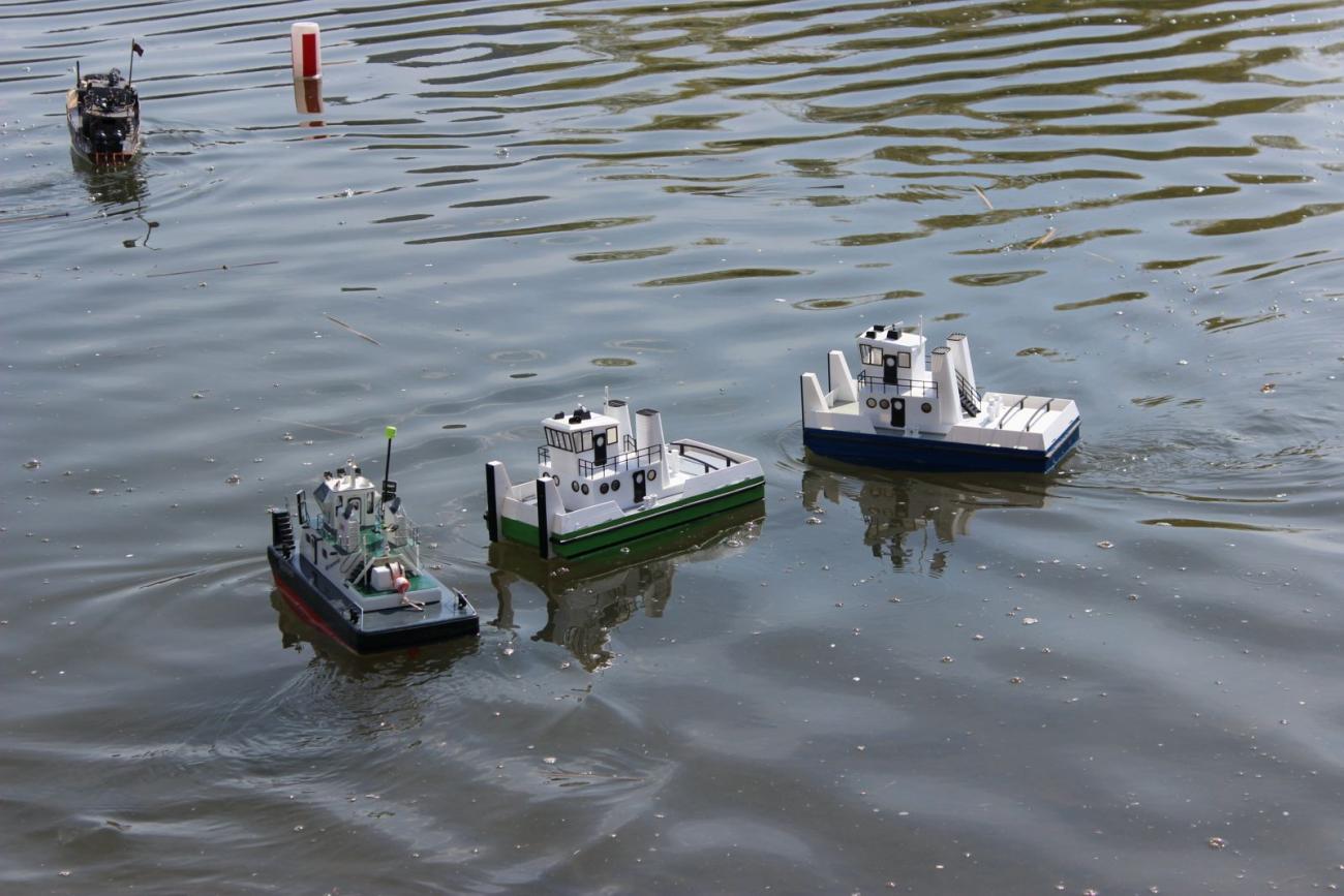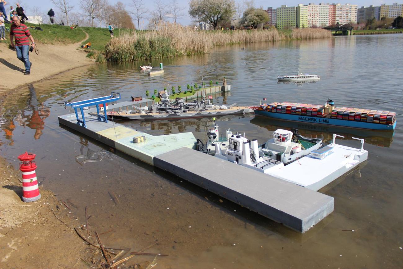 Vodní hladina se brzy proměnila v pestrou přehlídku modelů nejrůznějších kategorií. Byly zde k vidění elegantní jachty a mrštné čluny, robustní pracovní a obchodní lodě, včetně impozantní kontejnerové lodi, a nechyběly ani modely válečných plavidel. Zvláštní pozornost si právem vysloužila detailně propracovaná majáková loď, jejíž fotografie potvrzuje, že se jedná o typ modelu, který na podobných srazech není běžný.