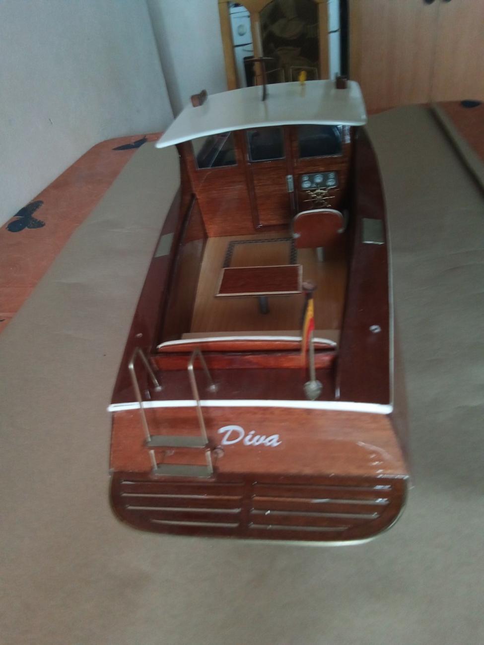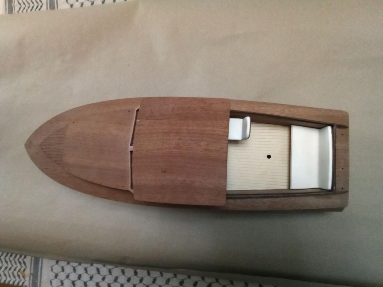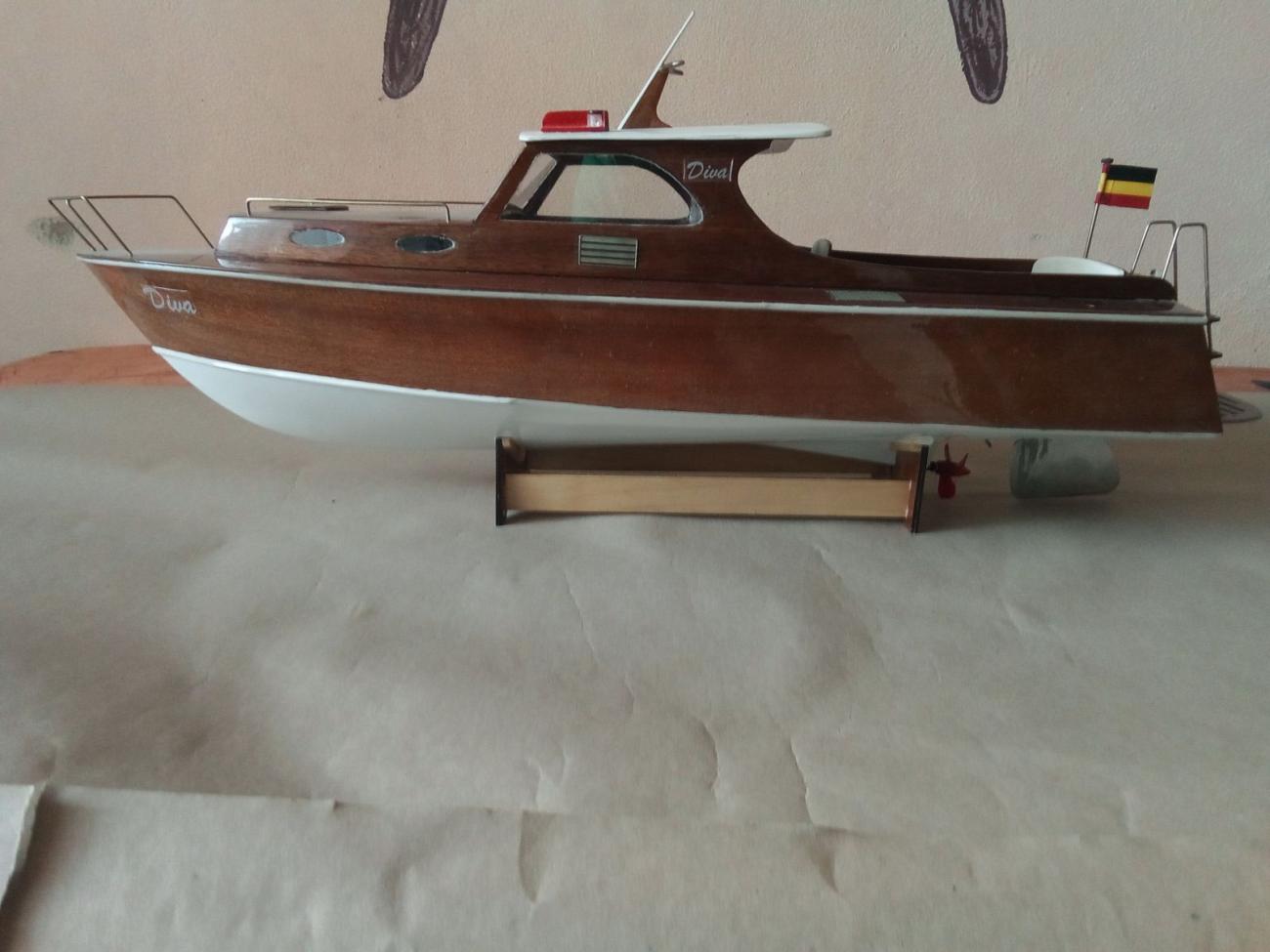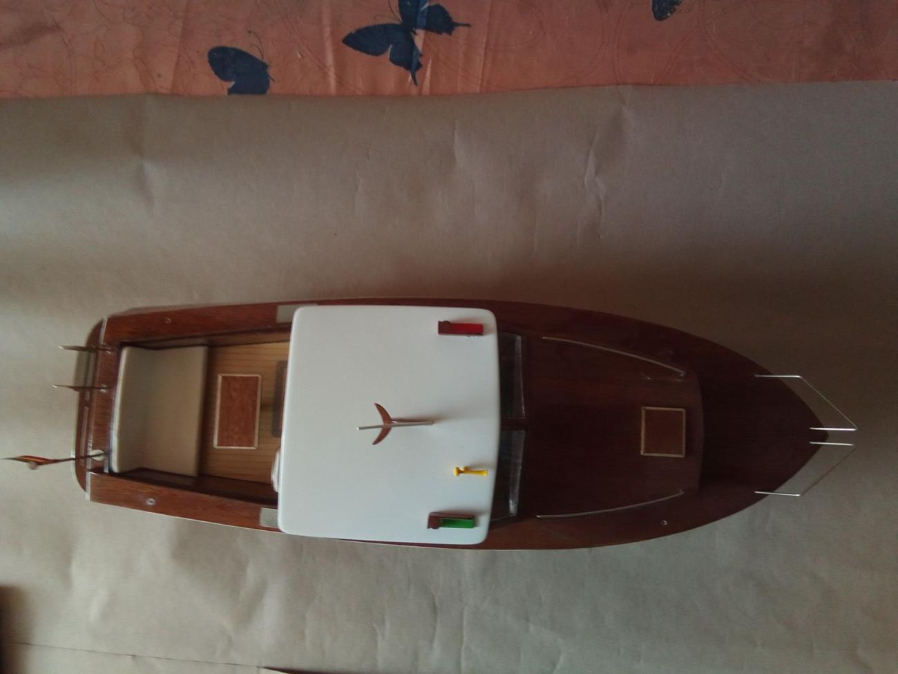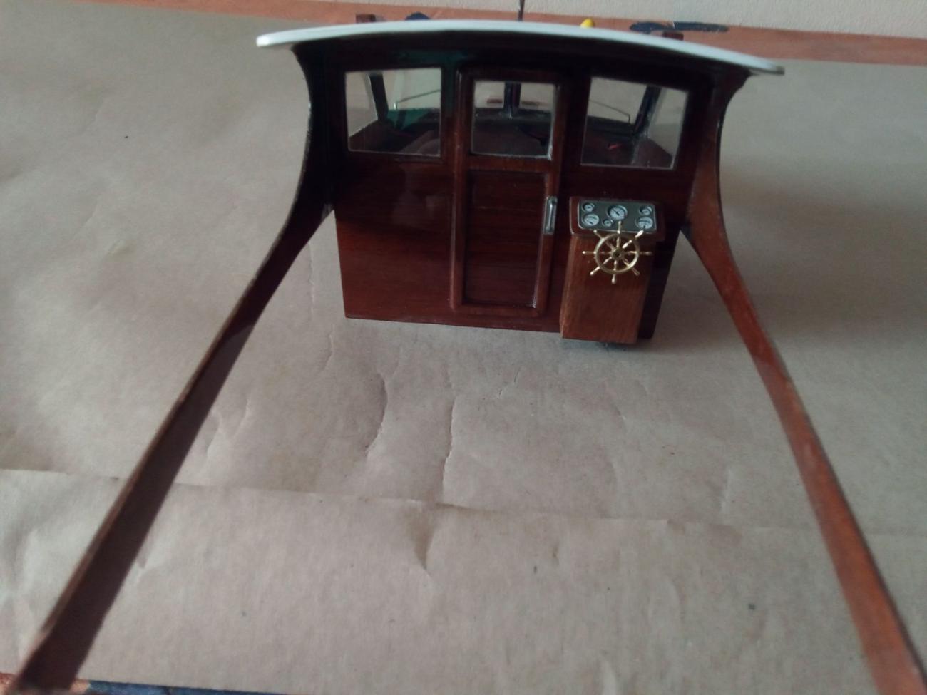 Jak bývá u stavebnic firmy Aeronaut zvykem, obsahovala přehledný barevný návod, perfektně zpracované překližkové i dýhové přířezy, zasklení oken, chráněné z obou stran fólií, dostatek skvěle provedené bižuterie včetně zábradlí, žebříku, schůdků a plata na zrcadle atd. Nechyběla ani bílá koženka na potah zadní sedačky a sedačky kormidelníka. Použil jsem i dodanou flexi spojku i lodní hřídel s pouzdrem, na který byla napájena redukce pro lodní šroub se závitem M4. Jen kormidlo ze stavebnice jsem nepoužil a vyrobil si o fous zvětšené z nerezového plechu. Hrubá stavba šla jako po másle. RC vybavení ve stavebnici samozřejmě chybí.
