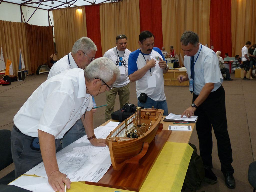 Realita byla taková, že hodnocení jednoho parníku trvalo půl hodiny. Jelikož tříčlenná komise rozhodčích potřebovala často hovořit se staviteli, byla na místě přítomná překladatelka z ruštiny, a tak jsem leccos odposlechnul. Na rozdíl od jiných fotografů a náhodných diváků jsem se na místě motal po celou dobu, takže to mohlo vypadat, že patřím k týmu ![]()