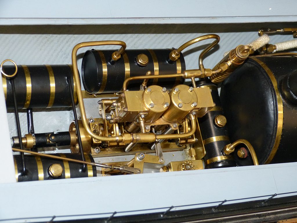 Parník Saturn (1:20) ruského modeláře Alexey Chuchumasheva na první pohled zaujme snad jen posádkou, jinak to po stránce exteriérové není nic neobvyklého. Brada člověku spadne až po sejmutí nástavby. Jednak díky důmyslnému systému, kdy se sejme téměř celá paluba naráz, a pak množstvím naleštěných aparatur v podpalubí. Vše se blýská, až oči přecházejí. Je-li vše doloženo fotodokumentací ze stavby, nemůže být debat o tom, že by strojovnu se šoupátkovým strojkem někde sekali do stavebnic jako Baťa cvičky. 97,67 je po právu nejvyšší udělený počet bodů za provedení parní strojovny. 96 bodů za model dává naděje na celkový úspěch a obhajobu titulu mistra světa.