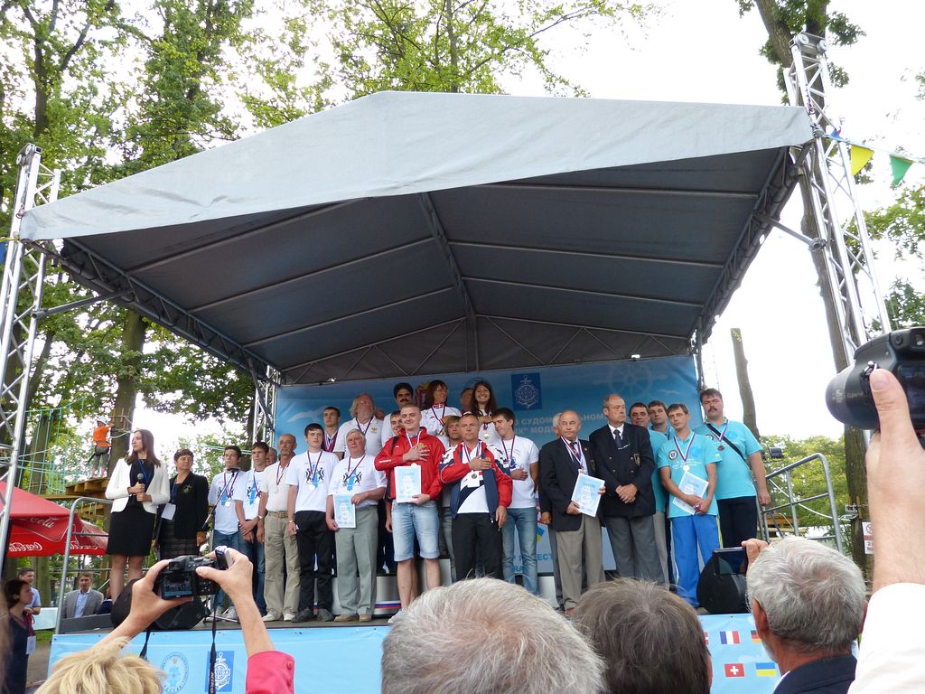 Úvodem ceremoniálu jsme si vyslechli několik proslovů. Poté za zvuků národních hymen vítězů jednotlivých tříd stoupaly vlajky vzhůru a ocenění modeláři na stupních vítězů přijímali medaile a diplomy. Fůra kategorií způsobila, že se vše protáhlo na bezmála dvě hodiny.