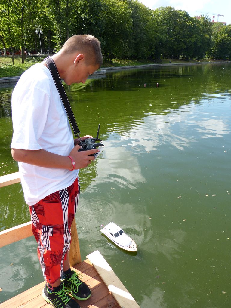 Ráno začátek opět obě F4A, poslední třetí jízdy. Startovní pořadí dle listiny. Přes noc vítr snesl všechny plovoucí listy a zbytky všeho možného do prostoru mol půjčovny lodiček, na kterých jsou upevněny startoviště a doky. Dnes si tohoto nikdo z pořadatelů nevšímá, navíc se začíná otáčet vítr a proud a všechno se pomalu dává do pohybu směrem k doku a trati F4. Jdu se domluvit s vedoucím startoviště, že to z loďky trochu stáhneme, ten s tím souhlasí, ale ruští rozhodčí se tváří, že jen zdržujeme. S Miroslavem Šmejkalem se tedy snažíme vylovit to nejhorší co mělo namířeno k začátku trati a doku, vděk ze strany rozhodčích žádný. Tomáš jede před Ondrou, hned po projetí druhou brankou chytá asi za kormidlo asi půlmetrový klacek, skoro třicet centimetrů přesahuje napravo. Při průjezdu před molem, kdy je jasně viditelný se Tomáš ptá vedoucího startoviště, zda si může couvnout (několik ruských závodníků již tak učinilo), bylo mu odpovězeno, že ne. Pokračuje tedy i s tím klackem, při prvním průjezdu vrcholové bójky se klackem zahákuje a otáčí okolo přední bójky, okolo boku lodi z obou pohledů je dostatečná mezera, takže rozhodčí hlásí čistá. V druhém průjezdu vrcholové udělal malé „esíčko“, takže si škrtnul klackem na druhé straně o zadní bójku, bohužel nevyjížděl z branky kolmo, takže vrcholový rozhodčí neviděl mezeru a nahlásil dotek. Při couvání klacek ztratil, takže do doku už zajel bez problémů. Nakonec 98 bodů. Po Tomášovi jde Ondra, po zkušenosti Tomáše po trati různě kličkuje, tak jak vidí nebo má podezření na nějaké větší plovoucí kusy. Prokličkoval dobře včetně bójek a nakonec se mu zde prvně podařilo i čistě zastavit v doku, takže 100 b. Konečné umístění v F4A junior tedy Tomáš 98, 98 (94) – 5. místo, Ondra 95, 100 (89) – 6. místo.