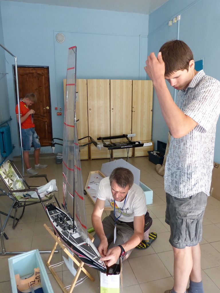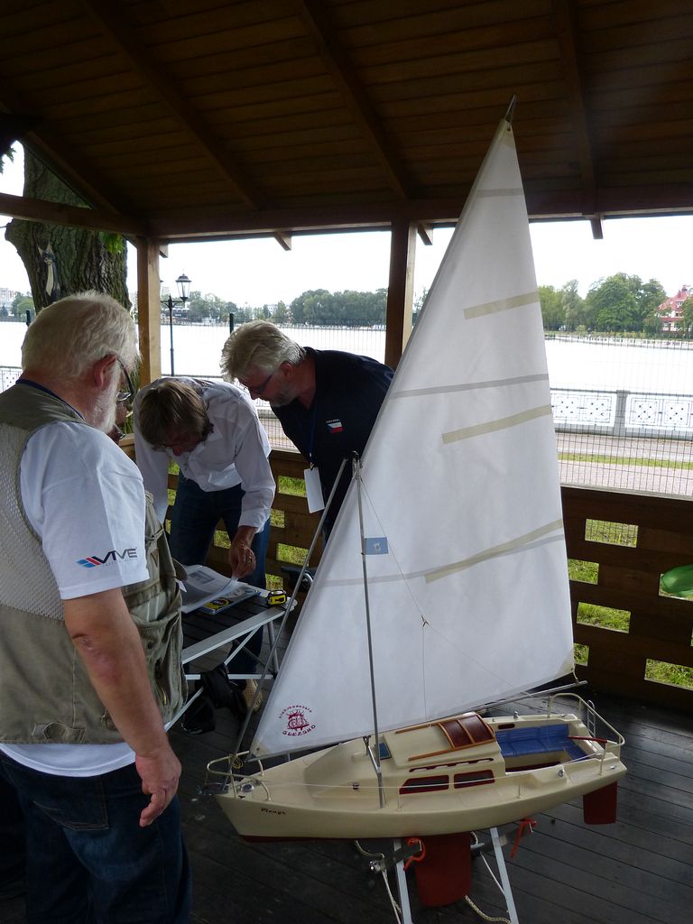 Jak již bylo napsáno v úvodním článku, plachetnicím patřila větší vodní plocha jezera Verhnee, přičemž startoviště bylo na druhém břehu. Díky příjemnému počasí mohla stavební zkouška ve středu 23. července probíhat pod širým nebem pod zahradním altánem. Bodovací komisi vedl Alexander Bogdanov. Dalšími členy byli Michal Daranowski a Ladislav Hanuška. Angličtina mohla jít tentokrát zcela stranou.