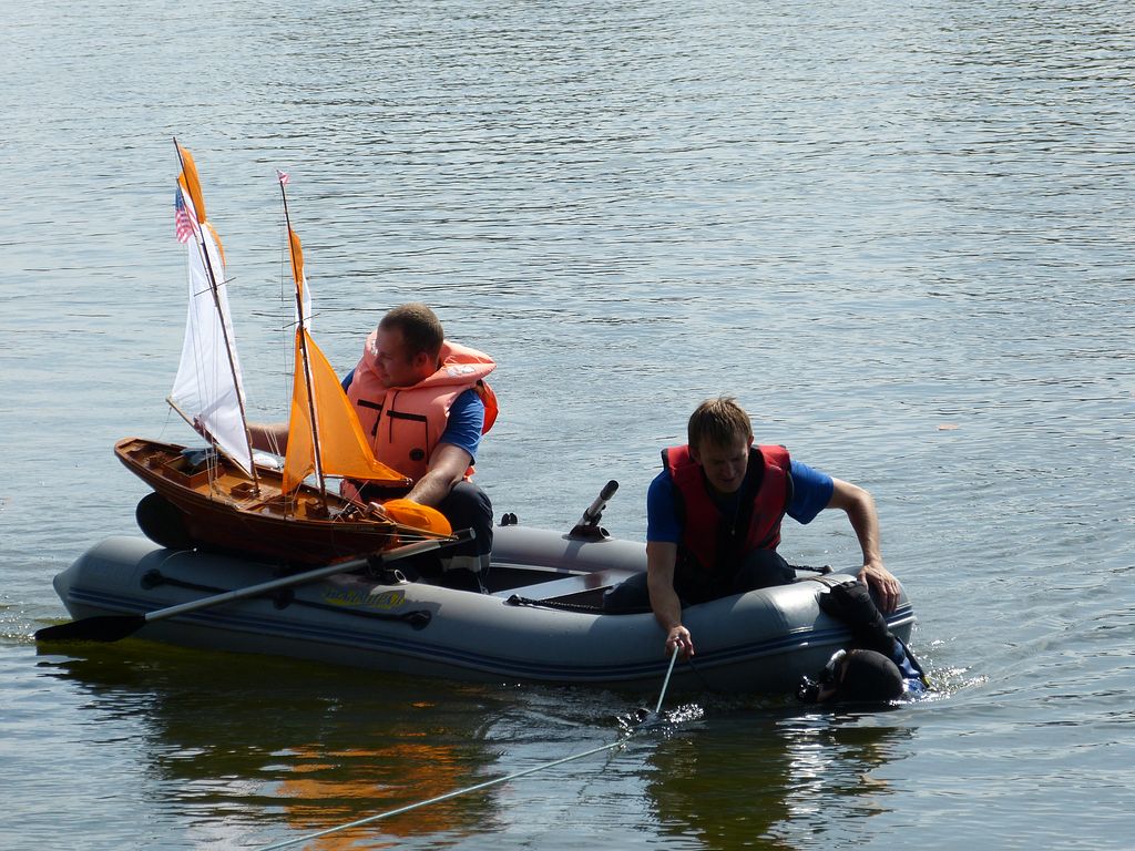 Pořadateli přivolaní potápěči můj model po marných pokusech najít jej ze člunu nakonec vylovili, když se jeden z nich odhodlal na průzkum dna. Kupodivu na to, kolikrát přes něj asi přejela kotva, vypadal model dobře. Plachty dokonale umyté, avšak nepotrhané. Jen palubní dekly vzaly zasvé (jeden rozlepený byl druhého dne nalezen).