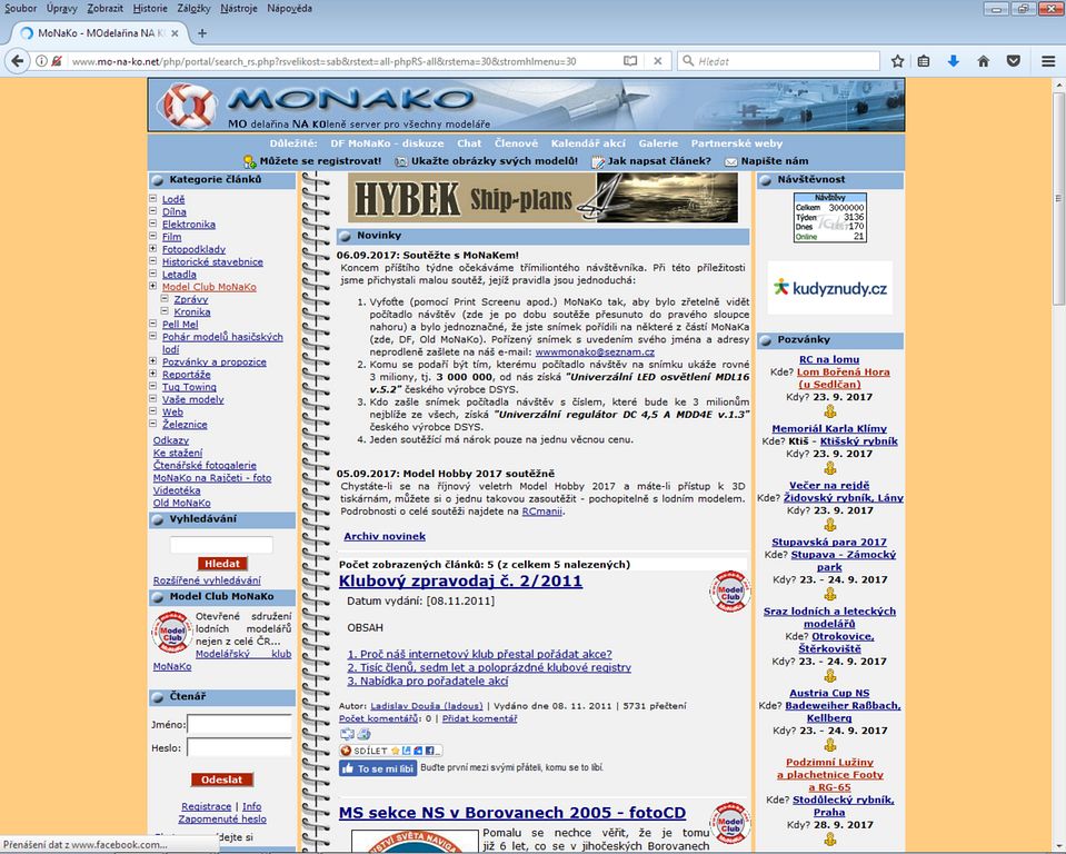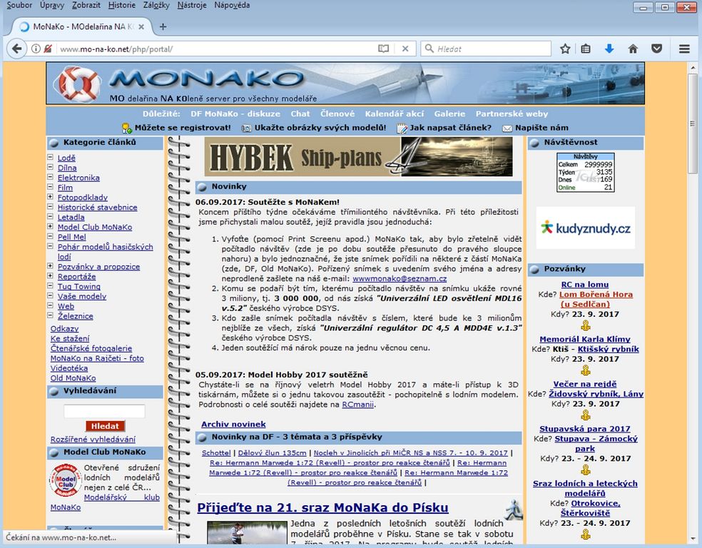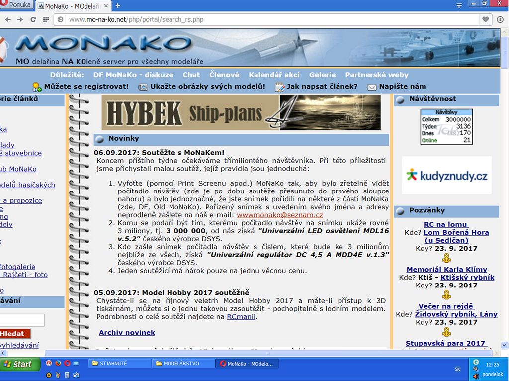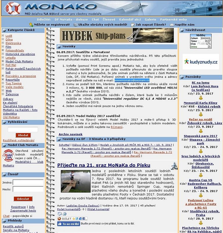 Začátkem září jsem vyhlásil soutěž pro toho, kdo se stane třímiliontým návštěvníkem MoNaKa dle počítadla TOPlist, které je na různých částech webu k vidění. Po dobu konání soutěže bylo přesunuto na viditelnější místo do pravého sloupce nahoru. V tu chvíli jsem si neuvědomil, jak přesně počítadlo pracuje a že může nastat situace, kdy krásné číslo 3 000 000 může spatřit více návštěvníků naráz. A tak se tedy přihodilo, že vítězů se sešlo více.