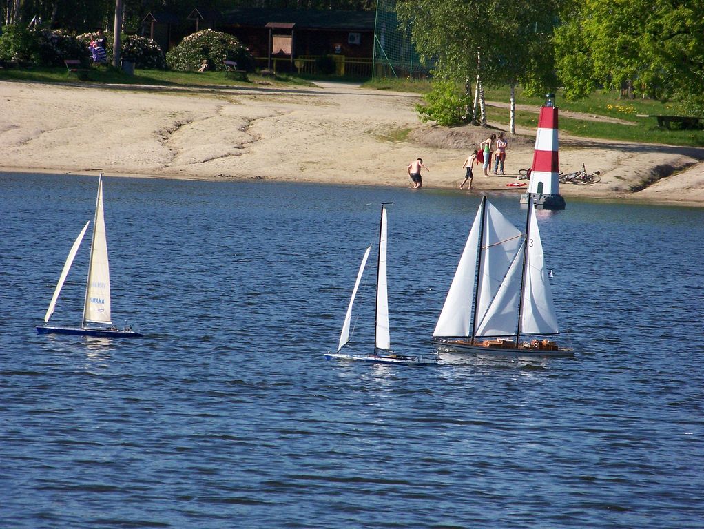Trochu jsem se při příjezdu lekl, abych náhodou nepřejel hraniční čáru do Německa, ale nakonec jsem zdárně odbočil ke Kristýně. U kempu nastalo dilema, zda se mám vydat hledat ubytování, či zavítat raději k vodě. Druhá možnost zvítězila. Zcela intuitivně jsem přes zákaz vjezdu dojel až na místo činu, což představovalo ujetí dalších 1500 metrů. U vody již bylo vše potřebné nachystáno a někteří soutěžící pilně trénovali na vodě. Nějakých 200 metrů od startoviště byl v restauraci vyhrazen prostor pro plachetnice modelářů z pěti zemí.