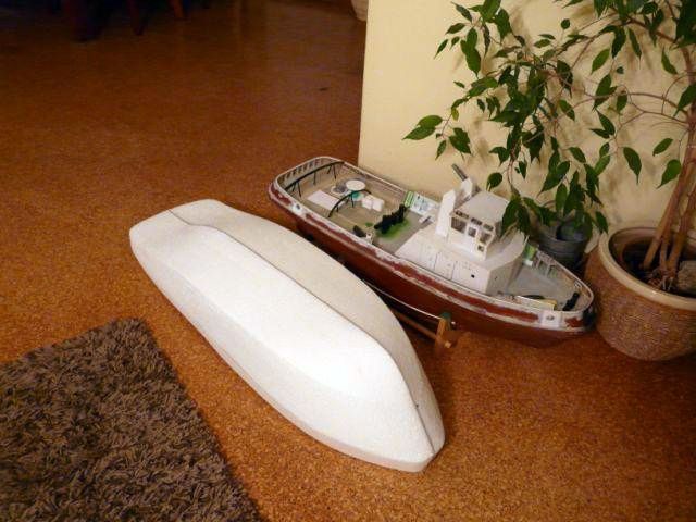 Pokúsim sa v krátkosti popísať jednu z možných metód, ako sa dopracovať k laminátovému trupu remorkéru, ak človek nemá veľa peňazí, času, prípadne možnosť si kúpiť laminátový trup na vysnívanú loď. A ešte ak nemá ani poriadne plány (ale to nie je podmienka J). Nedávno ma oslovil kamarát, či nemám nejaký plánik na remorkér, podľa možnosti jednoduchý, aby stavba netrvala príliš dlho. Ďalšou požiadavkou bolo, aby bol remorkér veľký (aspoň 1 meter), s dostatočným výtlakom a dvojmotorový, aby sa dali použiť komponenty, ktoré dotyčný kamarát už mal nakúpené (motory, vrtule, olovené akumulátory...).