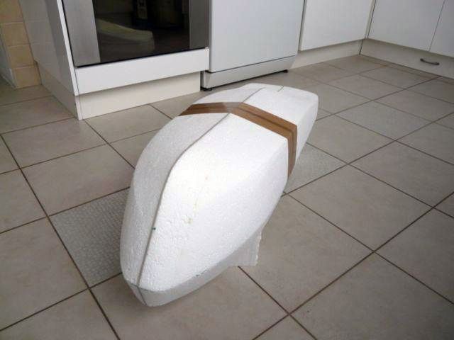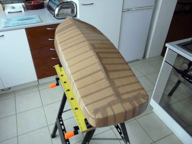 Keďže zámerom bolo polystyrén z budúceho laminátového trupu vybrať bez väčších problémov von, nasledovalo polepenie trupu baliacou páskou (PVC), ktorá mala slúžiť ako separátor.