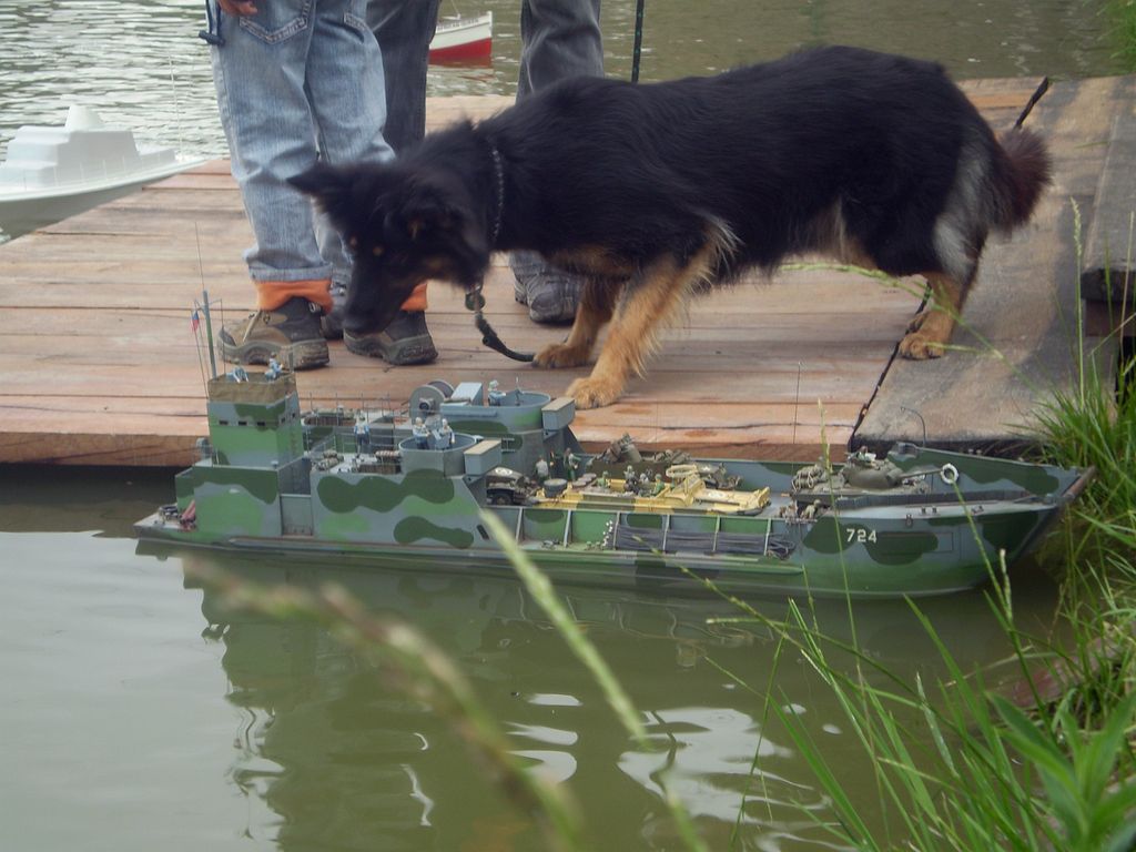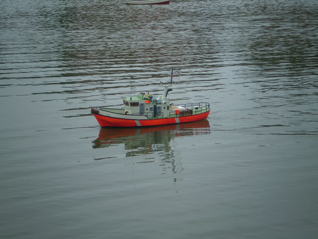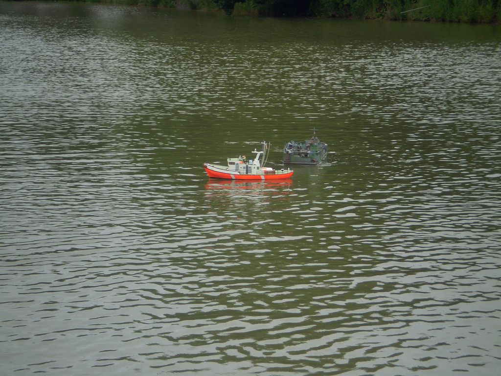 Mezitím se obloha trošku vyjasnila a padlo rozhodnutí dát na vodu i další modely. A tak se na hladině objevil Thoaban, sice nedodělaný, ale to nic neubralo jeho jízdním vlastnostem. Jirka dal na vodu svůj Western River a i ostatní modeláři nakonec odrazili od mola a na vodě se odehrával sice co do počtu lodí spíše komornější, ale zato veselejší lodní rej.