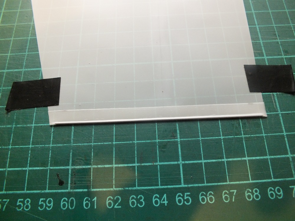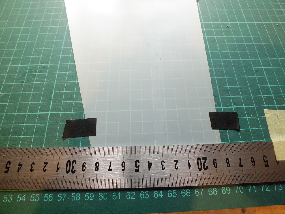 - Nejdřív si nařežu mylar na požadovanou velikost. Na výšku o 6 mm víc (šířka 3M pásky), z boku přidám alespoň centimetr na každou stranu, na spodní díl zespoda taky. Na vrchní díl přidávám 2 cm, bude se tam lepit výztuha (obr. 1 a 2).