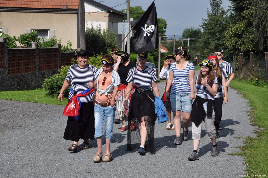 Martinka Svitáková přišla i s velkorážnou hákovnicí za pasem - a malá dcerka Petra a Petry Jíšů měla šavli - jak je vidět, u pirátů se musely ohánět zbraněmi i děti. Zrovna si nevzpomínám na nějaký vhodný film s touto tematikou, pokud tedy pominu pana Sandokana a podobné „kusy“. Za našeho mládí bylo podobných filmů určitě dostatek. (Geena Davis coby kapitánka pirátů taky nebyla k zahození, a to nemluvím o hraběti Joffre de Peyrac s Angelikou - určitě si každý vzpomene na podobné filmy.)
