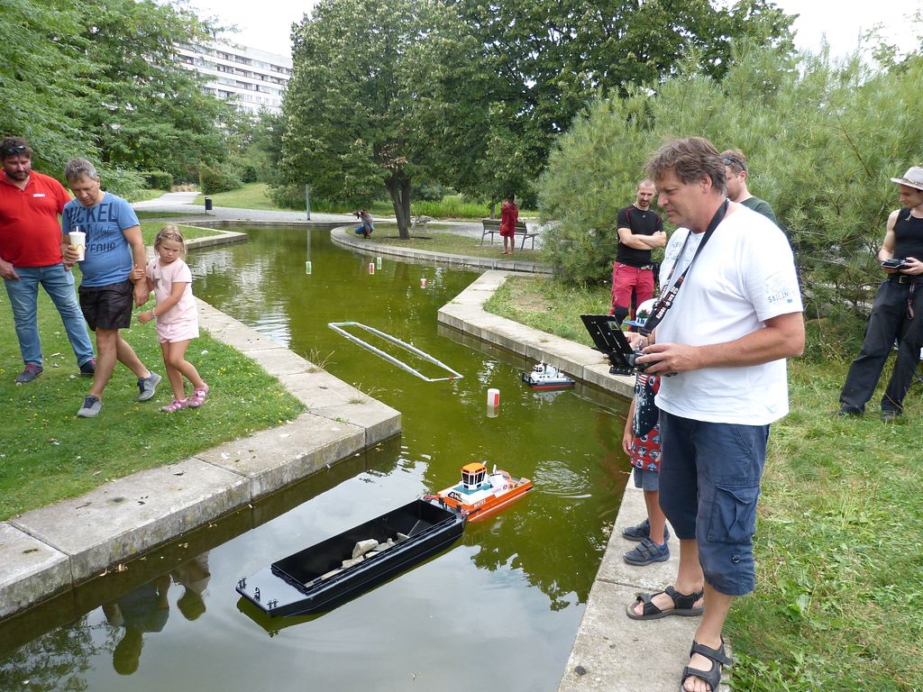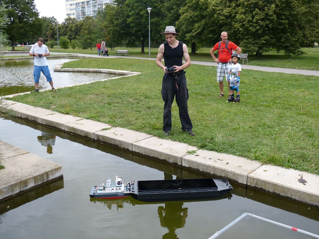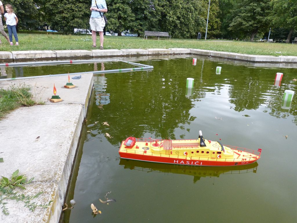 V sobotu 22. srpna jsme se po roční přestávce vypravili s modely hasičských lodí a remorkérů do Parku Přátelství v pražské části Prosek. Meteorologové předpokládali ochlazení s občasnými bouřkami, což by po několika ročnících, kdy jsme se pražili na letním slunci, snad ani nikomu nevadilo.