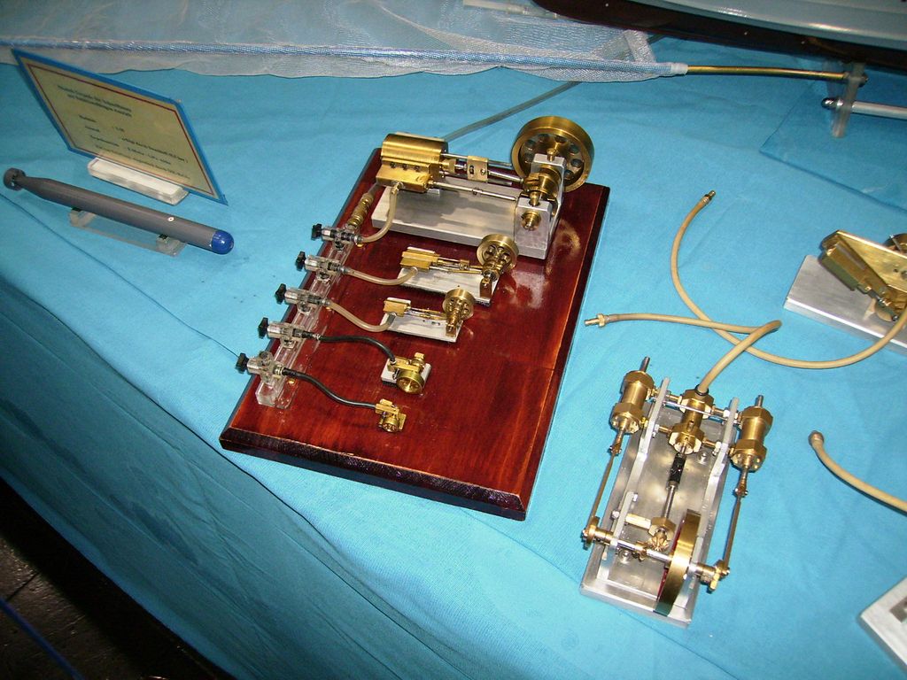 Bohužel, nic zvláštního jsem neobjevil, už jsem asi nasycený až zpovykaný ze všeho. Za posledních asi 120 Eur jsem zakoupil pár potřebných věcí: lodní šrouby (zatraceně drahé - 27 Eur/kus), samozřejmě dvě serva po 4 Euro u Konráda, ve stánku STEBA kuželové ozubené kolečka na pohon královského hřídele (buď pro stroj Sirius nebo pro pohon rotačního šoupátka), dceři nějakou hračku větrného mlýna pro děti za 9, krásné Ms trubičky 8, 12 a 15 mm s leštěným povrchem i vnitřkem na oscilační válce, asi zubařské frézičky po 6 Euro a ještě mi zbylo na Bratvurst s žemlí...