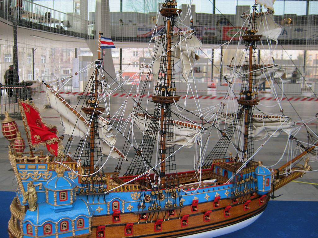 Fotogalerii rozdělím podle zaměření na jednotlivá témata. Dnes tedy mají slovo, či spíše prostor lodní modely. Pokud někdo může, ať mne doplní jako minulý rok, děkuji. Pěkný model lodi z papíru Bismarck se nacházel už v předsálí, vyfocen už loni, další modely lodí byly na obvyklém místě, zaujaly zejména modely lodí 17. a 18. století. Několik modelů se nacházelo i v patře na galerii.