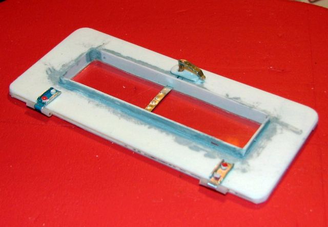 Vyříznul jsem otvor pro sklo a již výše popsaným postupem jsem vlepil rámečky...