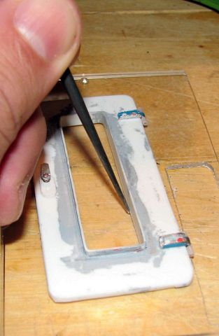 jsem na ně obrysy dveří a pečlivě vyříznul. Zabroušení jsem použil carborundum brousek (kvádřík) s dvojí