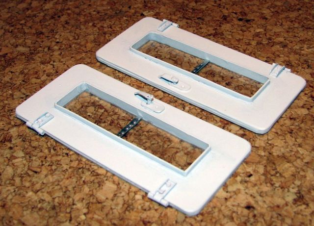 Dalším krokem bylo zhotovení dveří. Jako materál jsem použil známé výstražné tabulky 0,8mm silné. Narýsoval