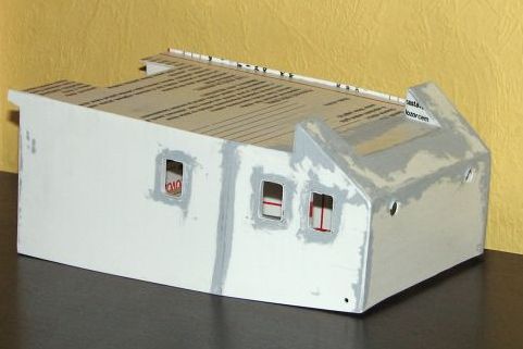 Dolní nástavby. Nejdříve jsem vlepil rámečky do oken stejným postupem jako u horní části.