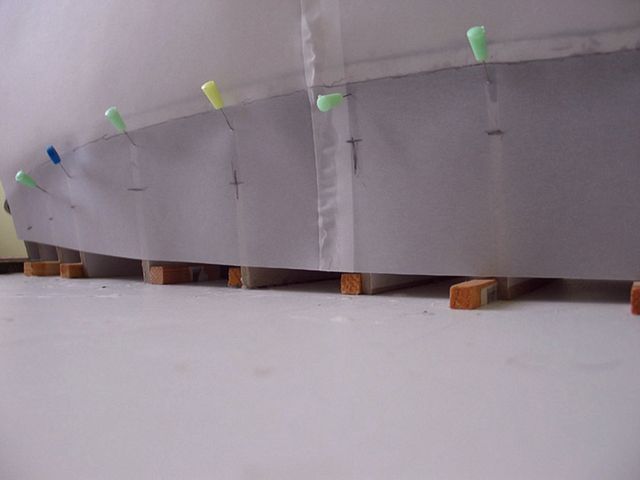 Zajistil jsem je pomocí špendlíků. Udělat šablonu bylo poměrně pracné a nakonec jsem to vyřešil velmi jednoduchým trikem. Slepil jsem