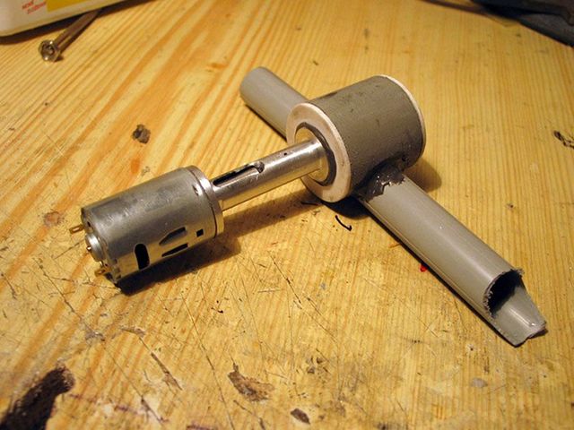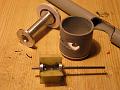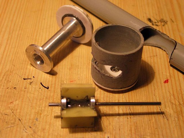 půjde hřídel a hle, vše klaplo. Odvrtal jsem otvor pro pouzdro hřídele. Umístil sestavenou dýzu, která měla z obou stran pasovací