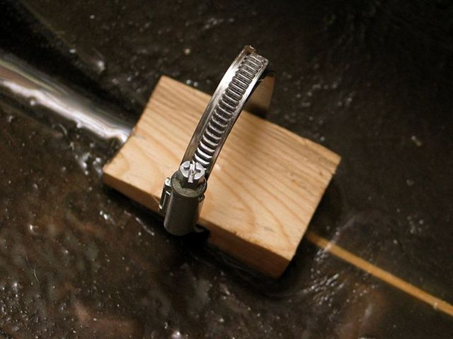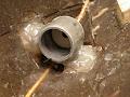 dřevěné laťky. Zhotovil jsem těsnící límec a vlepil. Předtím jsem však v místě, kde je podlouhlý otvor pro odtok vody nařízl bort