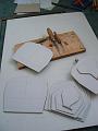 knihařskou lepenku 1500 g na m2. Vždy jsem slepil dva archy k sobě disperzním lepidlem. Aby se lepenka nekroutila