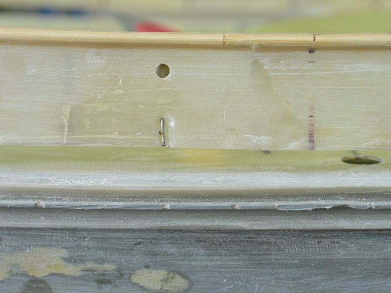 otvory jsem měl naznačené, rozšířil jsem je tak, aby trubičky přesně pasovaly. Zevnitř trupu jsem vlepil k palubě dřevěné destičky pomocí 24 h. epoxydu. Proti posunutí byli zajištěny vruty,