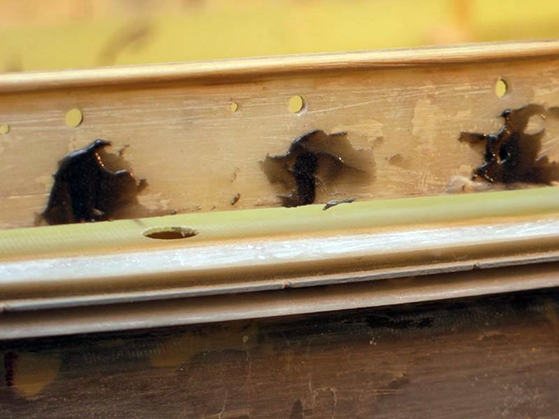kterými jsem destičky z vnějšku přitáhl. Po vytvrzení epoxydu jsem vruty odstranil a otvory po vrutech zamáznul Altecme 4 min.