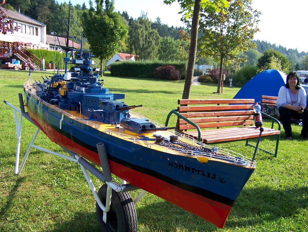 U vody probíhaly improvizované noční jízdy, kdy Bambinot svým remorkérem tahal plachetnici Atlantis. Modelů se po hladině prohánělo více, ale nepočítal jsem s tím, že bych ještě něco fotil a neměl fotoaparát u sebe. Mohu se uklidňovat tím, že by z fotek stejně mnoho nebylo.