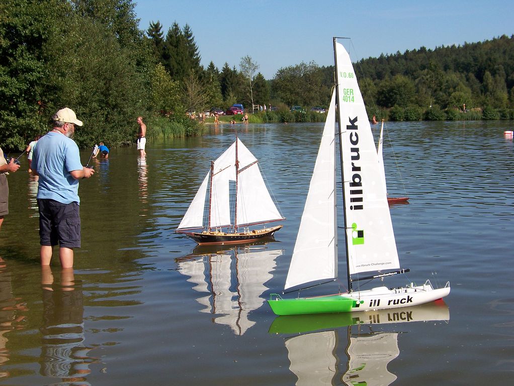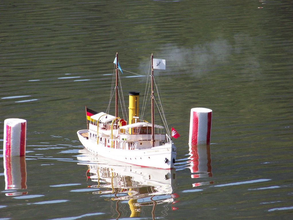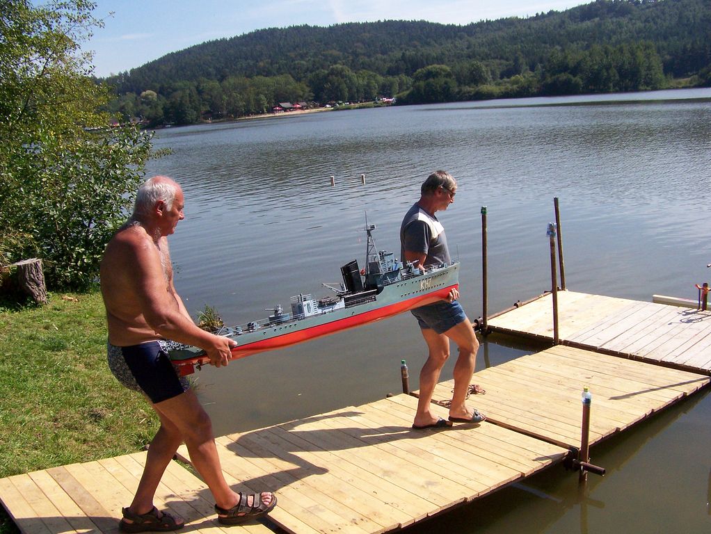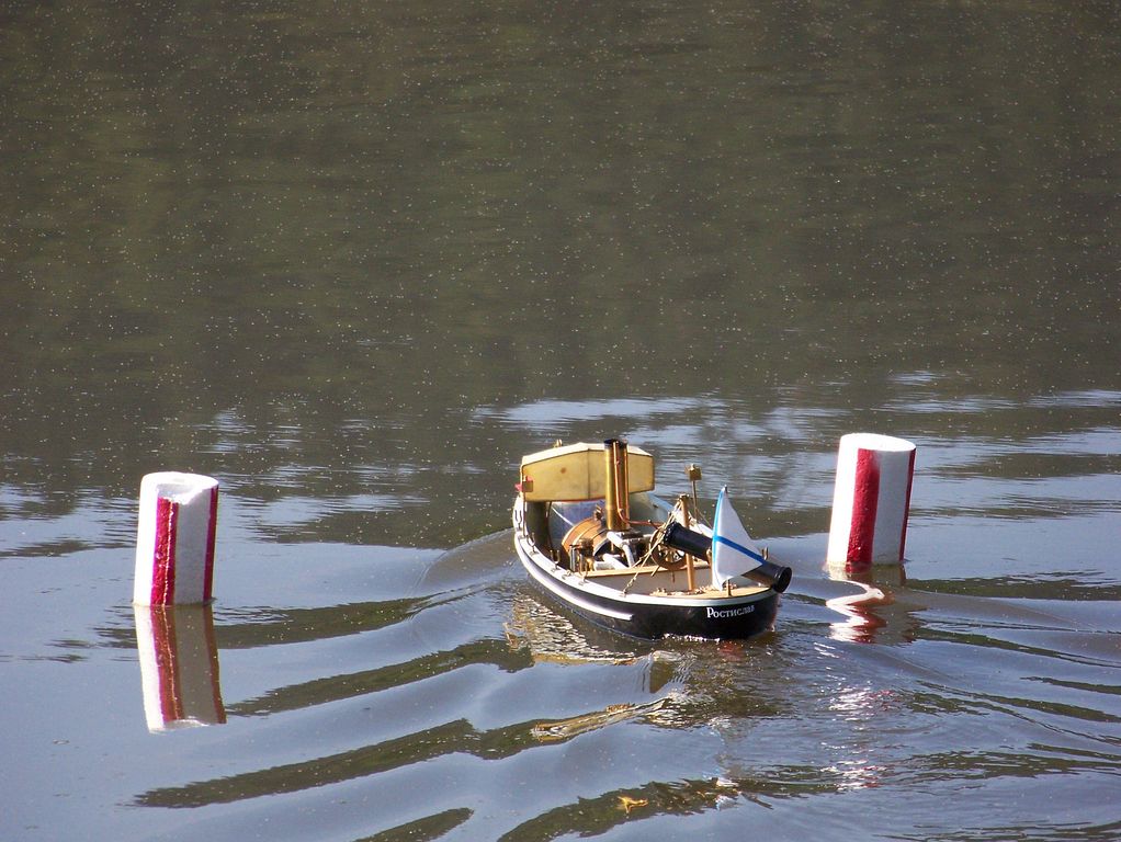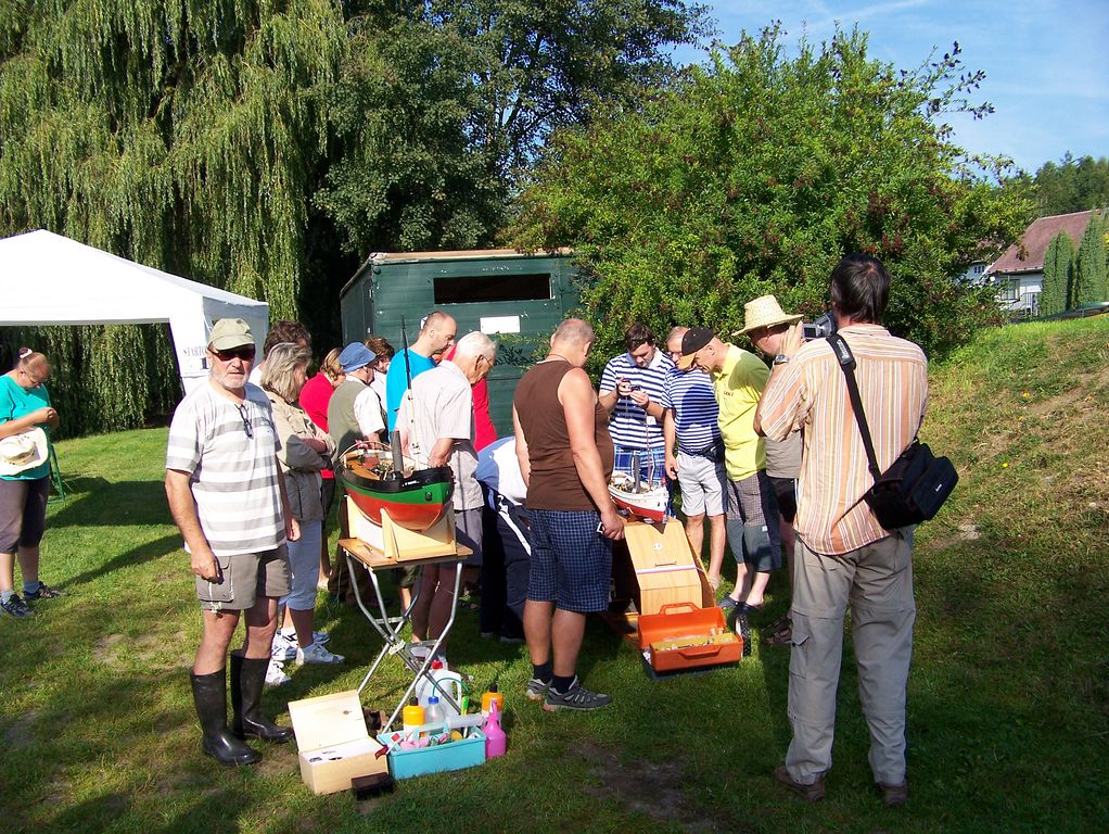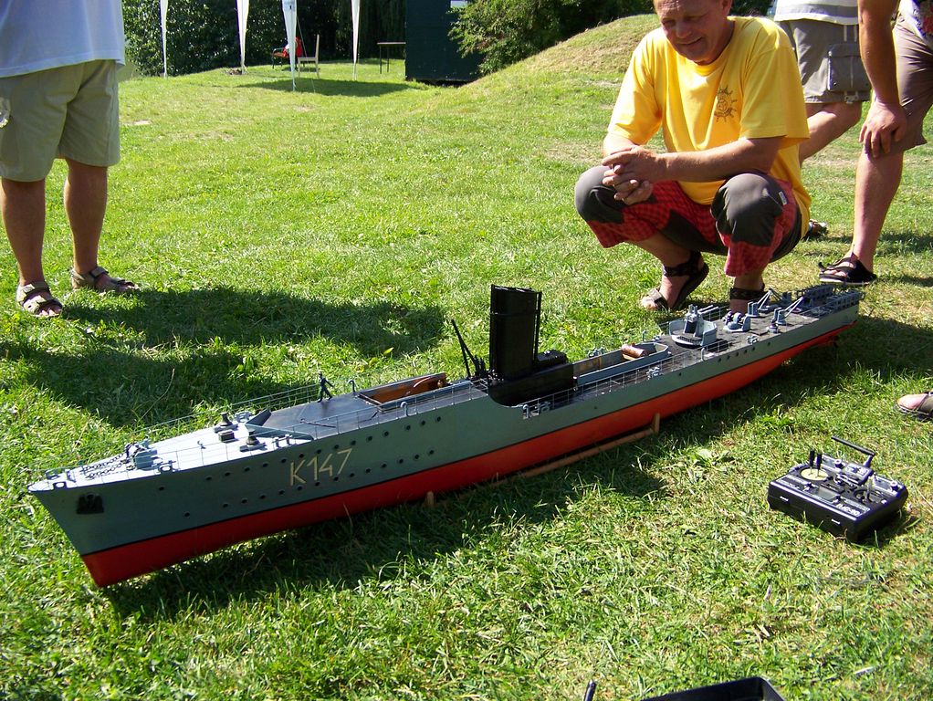Během polední pauzy, kdy na všech startovištích panoval klid, šel Tomáš Kočí testovat odhadem dvoumetrový parník K147. Díky dvěma lodním šroubům může model manévrovat i na malém prostoru, a to za přispění protitahů. Než se povedlo roztopit pod kotlem, okupovala závodní dráhu jedna „káčková“ plachetnice s délkou trupu 1,9 m. Obecně lze říci, že pauz hojně využívali různí modeláři k prohánění modelů mimo soutěž.
