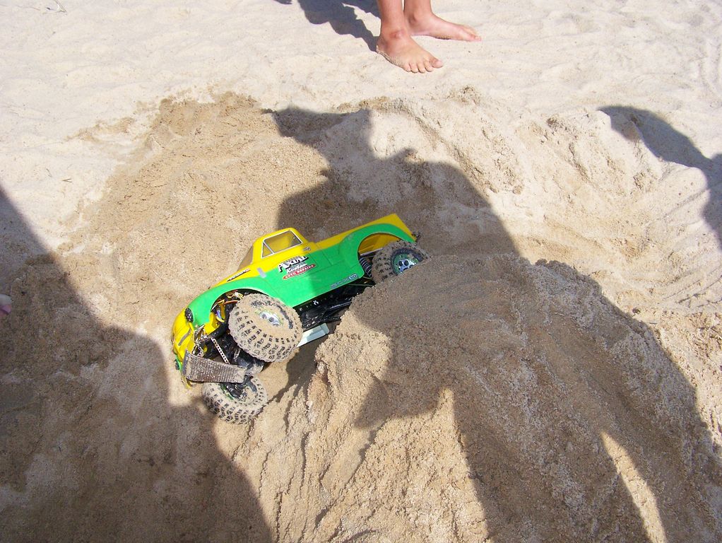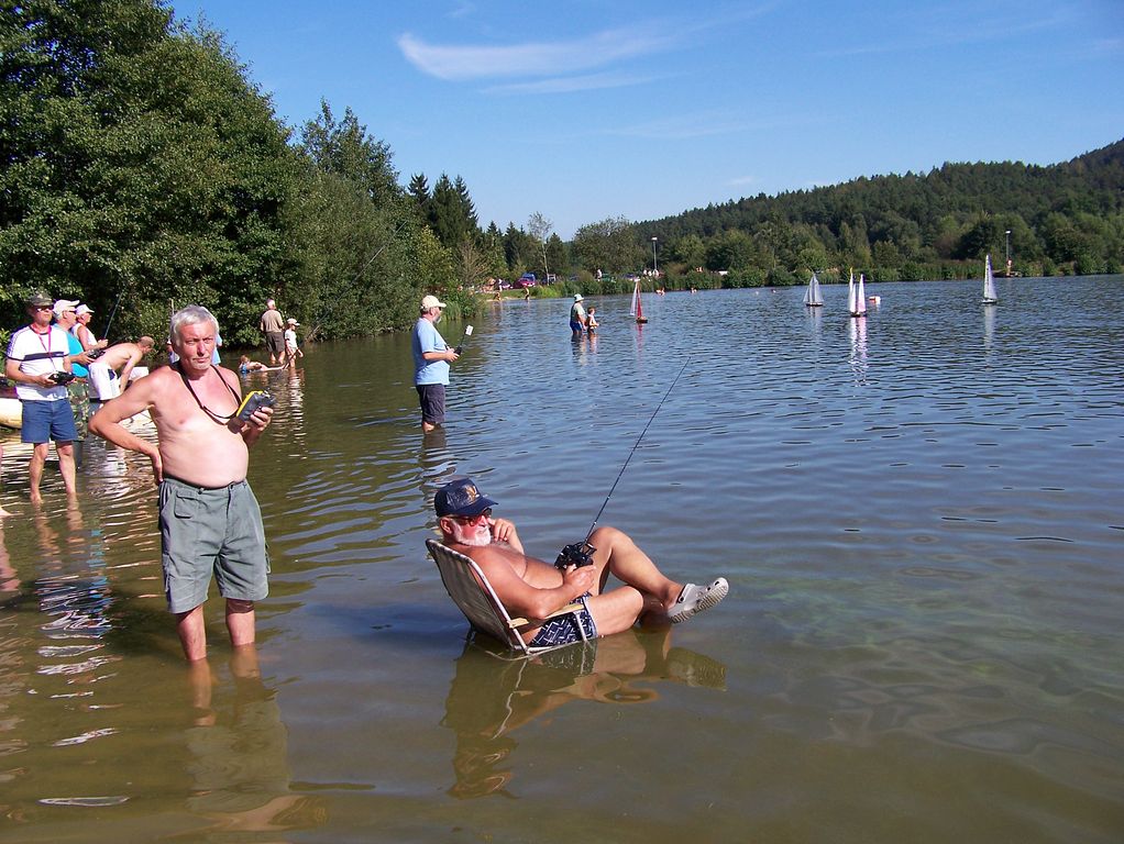 Cestou k vodě jsem potkal Nalima, se kterým jsem se několik měsíců neviděl, takže bylo o čem povídat. Po zaregistrování se u Petra Hlavy jsem zamířil k recepci a šel se ubytovat, přičemž jsem narazil na Ivankapa a šel s ním dokončit předem domluvený výměnný obchod. Ze slíbených pár časopisů se vyklubala solidní hromada. Jak se mu do auta ke všem maketám vešla, doposud nechápu. Rázem nastal čas oběda a tradiční odpolední siesty, a tak jsem mezi plachetničkáře raději nešel a sledoval jízdy juniorů na nedalekém startovišti. Rozpálený písek dlouhému sledování moc nepřál, a tak jsem se opět vzdálil. Přiznám se bez mučení, že písečná pláž zrovna nepatří k povrchům, které bych za účelem provozování lodních modelů vyhledával, ale kdo někdy v ATC Eden byl, tak ví, že s pískem tam nešetřili.