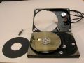Jako základ je využito mechanické šasi počítačového hard disku. Vadné, nebo kapacitně nedostačující disky končí svůj život většinou krátkým letem do odpadu. Avšak mechanické provedení těchto zařízení je precizní. Plocha disku je zrcadlově dokonalá, pohon je prakticky bez vůle. Já jsem získal disk, vyřazený kvůli nízké kapacitě. Po připojení na zdroj se roztočil, hlavičky se hýbaly a tak jsem se domníval, že by bylo možno využít stávajícího pohonu. To se ukázalo pro mne neschůdné. Pohon má velmi nízký kroutící moment a v případě, že jsou hlavičky demontovány, disk se periodicky zastavuje a rozbíhá.