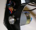 Z kousku duralu jsem vyrobil řemenici o průměru přibližně 20mm s drážkou pro O-kroužek. Na hřídeli motoru je zajištěna červíkem M2. Dle velikosti O-kroužku je třeba najít na víku šasi polohu pro upevnění motoru. Kolem této polohy jsem vyřízl oválné díry pro středové ložisko motoru a upevňovací šrouby, tak aby bylo možno posouváním nastavit tah v O-kroužku. Výškovou polohu řemenice na hřídeli motoru je třeba zkusmo vyzkoušet tak, aby se kroužek za chodu nedotýkal rotujícího disku. To způsobuje významnou ztrátu výkonu. Drážka na řemenici postačí k tomu, aby byl kroužek vedený a necestoval po plášti krokového motoru disku.