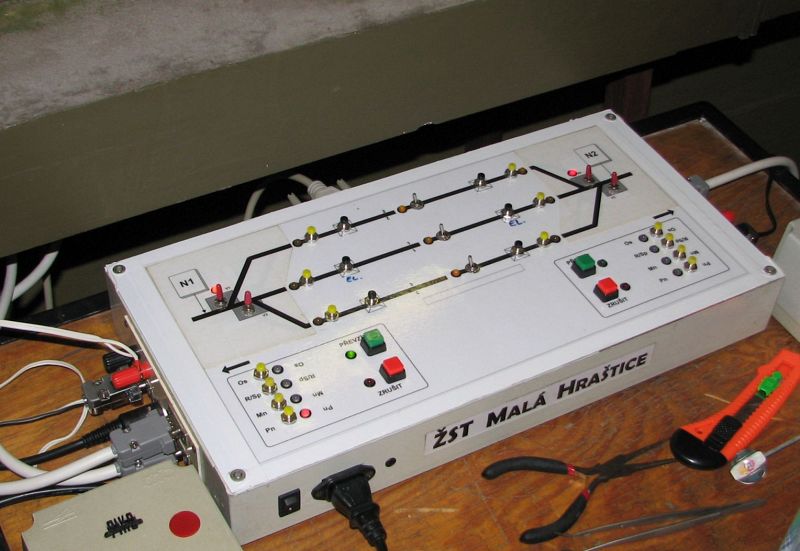 Provoz na kolejišti se řídí podobně jako ve skutečnosti. Každá stanice má svůj ovládací pult s napaječem. Stanice a trať jsou pak rozděleny na jednotlivé kolejové obvody. Když má vlak jet např. z Dobříše do Malé Hraštice, stisknutím tlačítka na ovládácím panelu dá obsluha v Dobříši nabídku do Malé Hraštice. Když ji obsluha stiskem jiného tlačítka přijme, může být vlak z Dobříše vypraven. Je to opravdu dobře vymyšlené. Víc podrobností se můžete dočíst na klubovém webu, kde jsou tyto technické finesy popsány. Skvělé na tom je, že k tomu nejsou potřeba dlouhé a tlusté svazky kabelů, ale stačí jednotlivé moduly mezi sebou propojit jen pětižilovými propojkami.