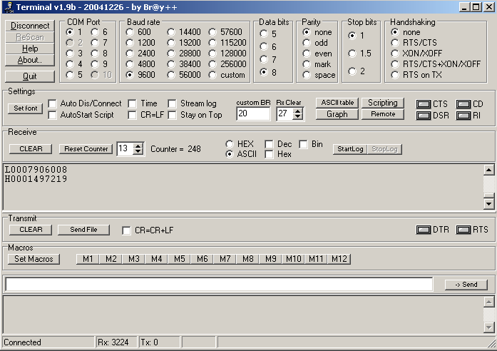 k počítači přes COM, spustit terminálový program a ten nastavit na 9600 Bd, 8