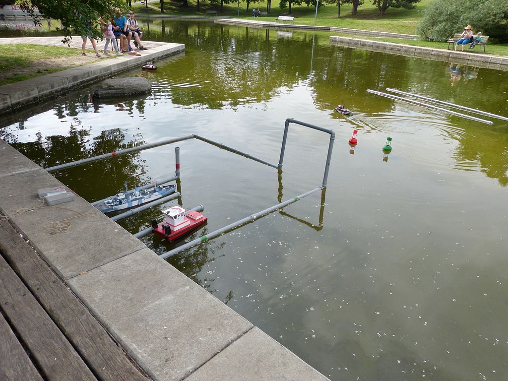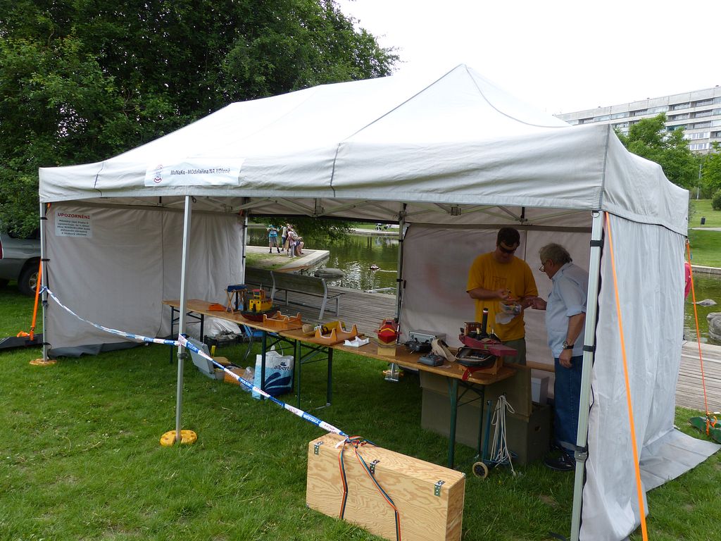Celodenní oporou u vody mi byli Dejv a Svenny, kteří ze svých flotil rovněž přivezli, co se dalo. Dejv sice tentokrát nepřivezl svůj přístav, ale to nevadí. Alespoň nebyl zasažen během policejní ukázky jako Svennyho Swordfish, jemuž „střepina granátu” prostřelila bok![]()