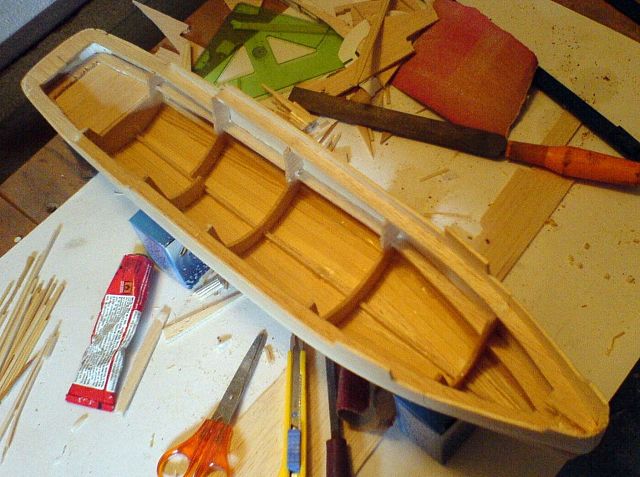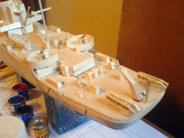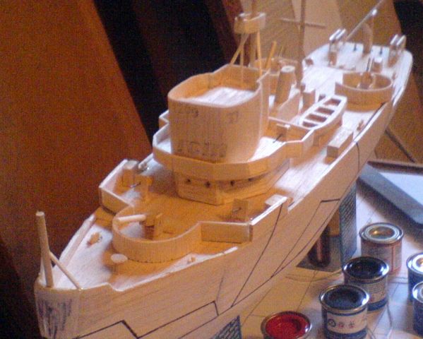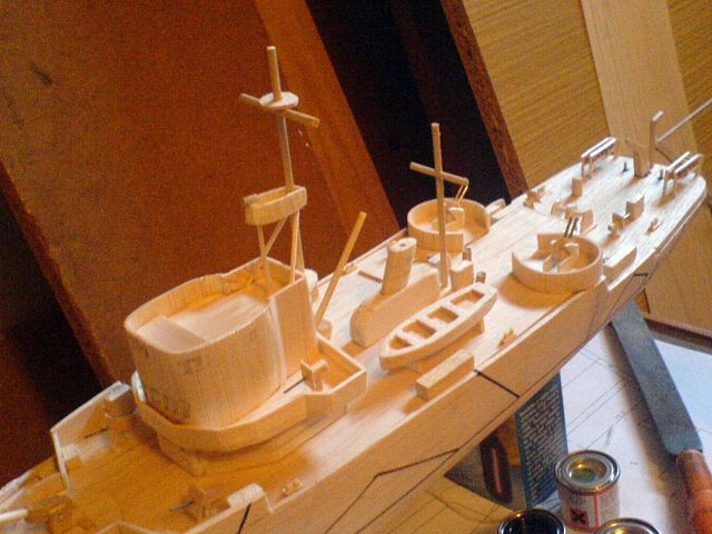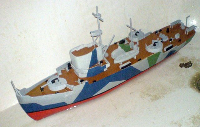 Posílám pár fotek ze stavby mojí minonosky třídy Admirable. Je to takový můj první pokus o lodní model, takže zpracování není úplně v pořádku. Jako předloha posloužila papírová vystřihovánka na stránkách Digitalnavy. Měřítko bylo upraveno na 1:125, jinak všechny plány jsem si kreslil sám. Jako pro strojního projektanta to byla brnkačka.