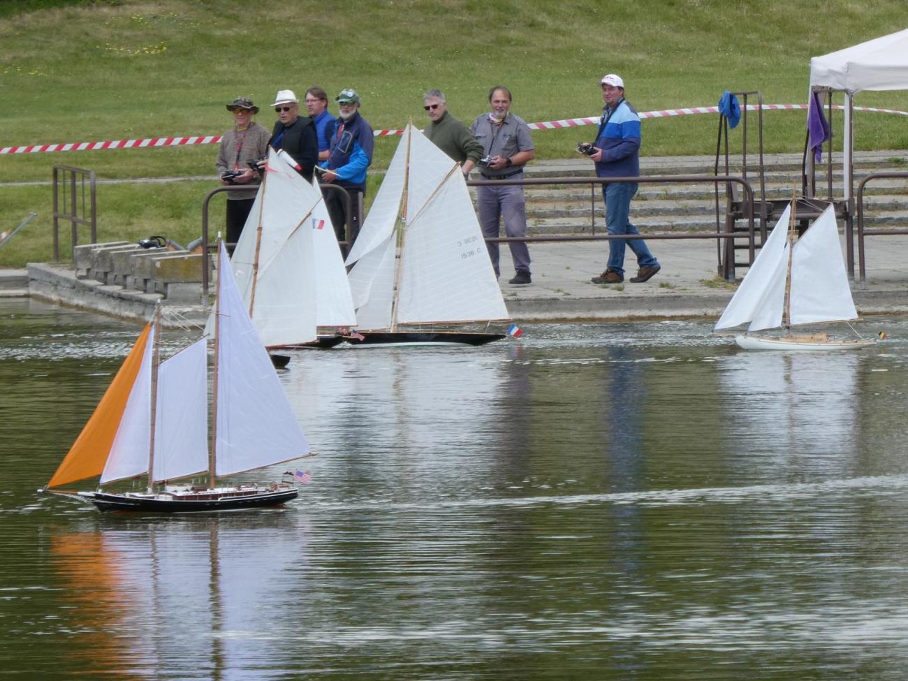 Než došlo na stavební hodnocení modelů parníků, které se po delší době sešly dokonce čtyři, zapojil jsem se na startovišti NSS jako rozhodčí-zapisovatel. Později jsem se zdržoval u motorových lodních maket, a to po většinu času na startovišti F2 s Jiřím Krupičkou jako rozhodčí, jelikož personální nouze tentokrát panovala i tam.