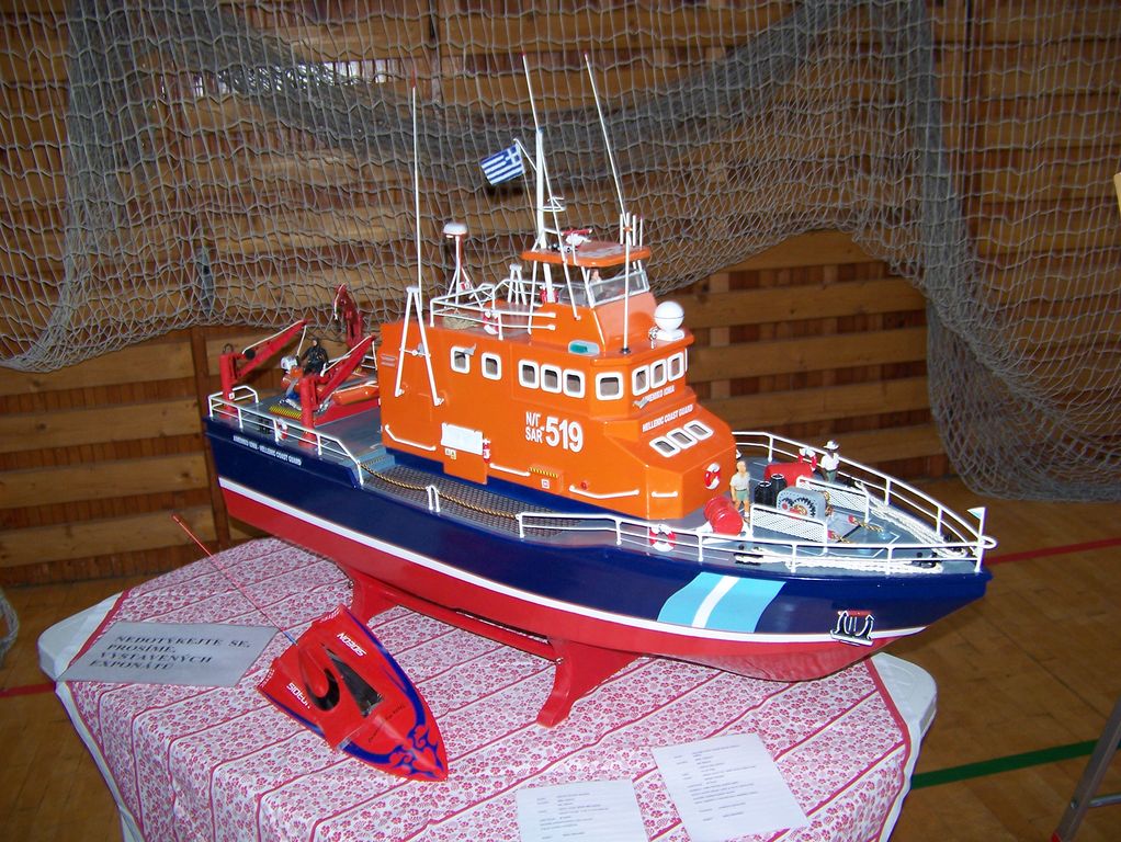 Hezká výstava a fotky z ní, pěkné modely autorů... Nechtěl bych být za hnidopicha, ale u jednoho modelu, byť si nehraje na maketu, mě zarážejí české nápisy na výstražných tabulkách a HP! Je to jako pěst na oko-řecká loď, anglické názvy COAST GUARD chápu-je to mezinárodní a srozumitelné, ale dát tam české nápisy NEBEZPEČÍ POŽÁRU a HASICÍ PŘÍSTROJ...? Vím, že je to asi od českého výrobce maketových detailů, který tam dává české nápisy, ale přeci jen......