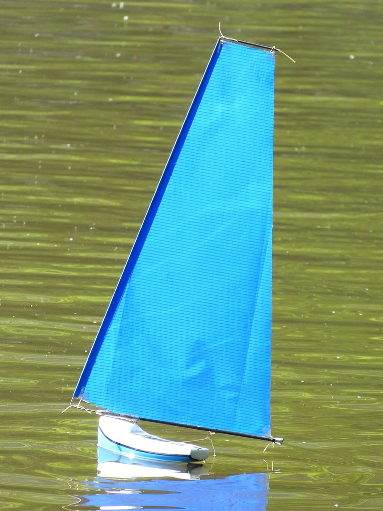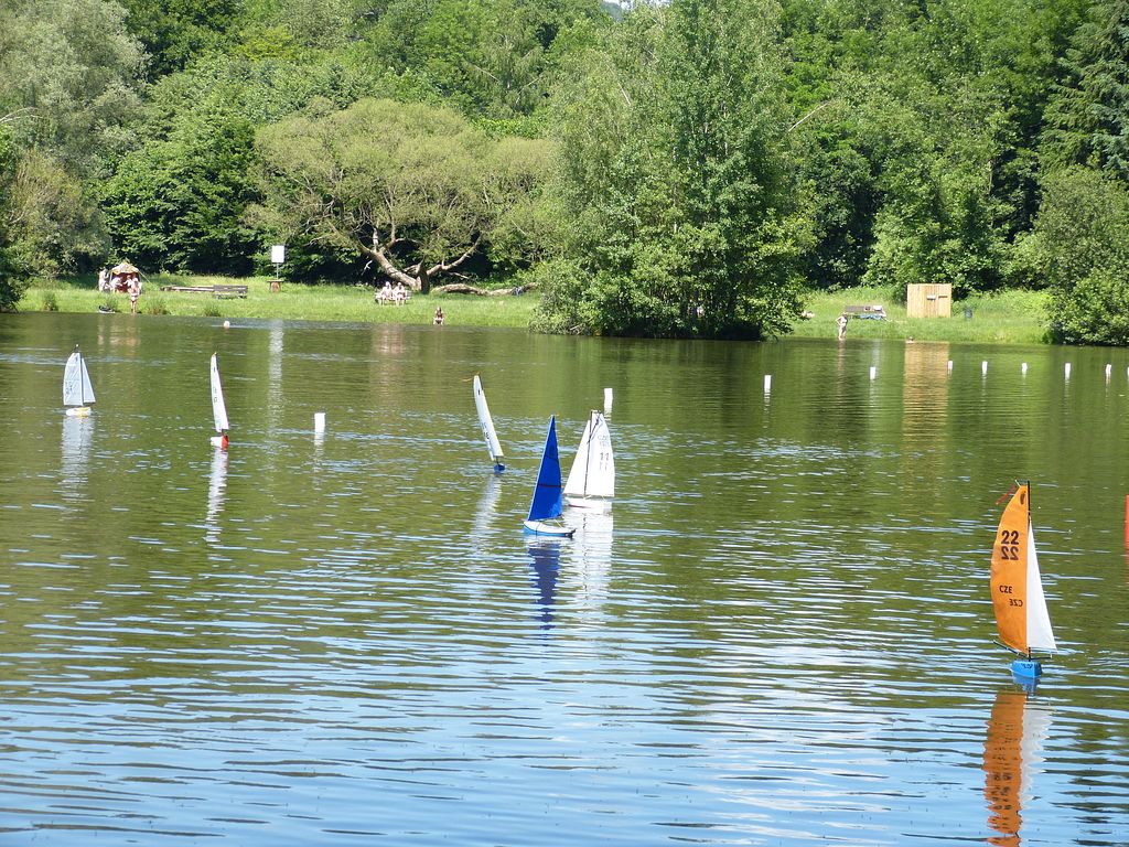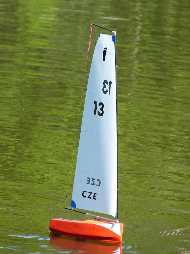 Do auta jsem naložil plachetnic Footy. Sice bych našel i nějaký model pro F4A, ale nechtěl jsem si to komplikovat. Celkem bylo k vidění 20 plachetnic Footy – 10 jezdilo na juniorské trati a 10 na seniorské vždy ve chvíli, kdy se na opačném břehu přírodního koupaliště proháněly rychlé modely sekce M. Během celého víkendu jsme si tak dopřáli 26 jízd, junioři stihli o jednu méně.