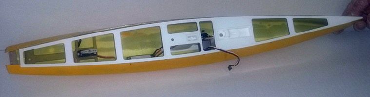 V trupu je místa „jako v hodinkách”, tak před lepením paluby musíme vložit desku serva kormidla a celý středový prvek. Potom stále ve vnější konstrukci budeme lepit palubu. Zmíněná vnější konstrukce je připravená tak, že umožňuje vložení kýlu do pouzdra a také stěžně (uhlíkové trubky). To vše opět pro kontrolu správného ustavení. Paluba je z plastu tl. 1 mm. Po zalepení paluby demontujeme vnější konstrukci, trup již je dostatečně tuhý.