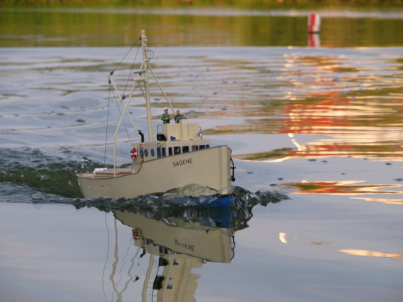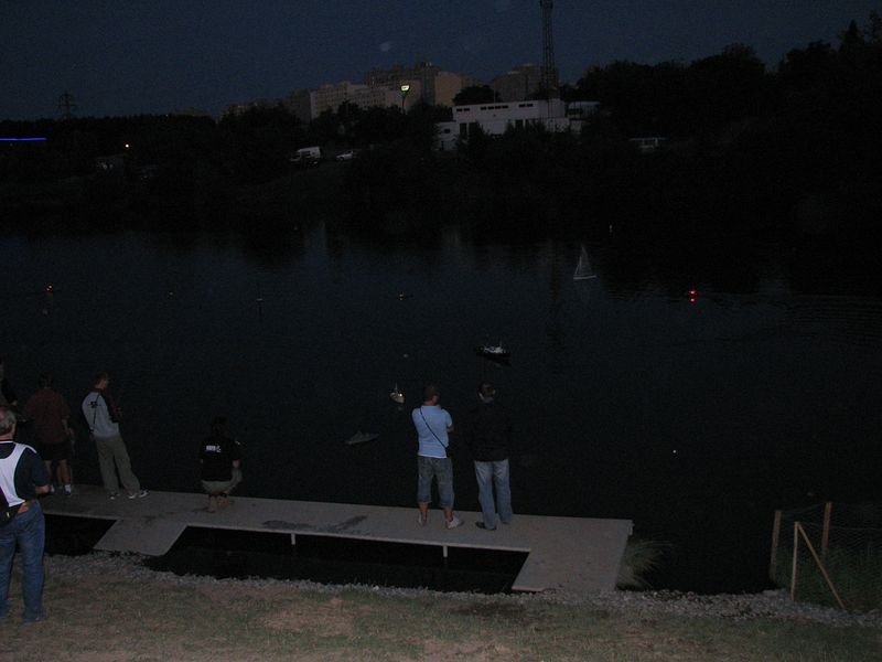 Škoda, že většina utekla jakmile se opravdu sešeřilo. Prakticky v době, kdy nastává ta správná noční plavba, kvůli které se na Košíku scházíme. Lodní modely se mění v ploché a tmavé siluety. Poziční světla získávají na intenzitě a když vám svítí opravdu jak mají, tak si vychutnáváte ten pocit, že svoji loď dokážete přesně ovládat i v noci. Do úplné tmy nás na Košíku zůstalo opravdu jen pár, ale o to s větší chutí jsme si zajezdili.