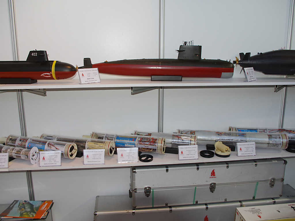 Čínský výrobce Arkmodel, firma s pravděpodobně největším sortimentem funkčních modelů ponorek na světě, částečně utlumila produkci lodních modelů a v jednoduše zařízeném stánku předvedla nejen kompletní ponorky, ale především velkou nabídku vybavených těsných trupů osazených jak pístovými balastními nádržemi, tak čerpadly a vtipně tvarovanými plastovými nádržemi. „Vnitřnosti“ ponorek lze koupit samostatně a obestavět trupem vlastní konstrukce, to je velká pomoc pro modeláře ponorek.