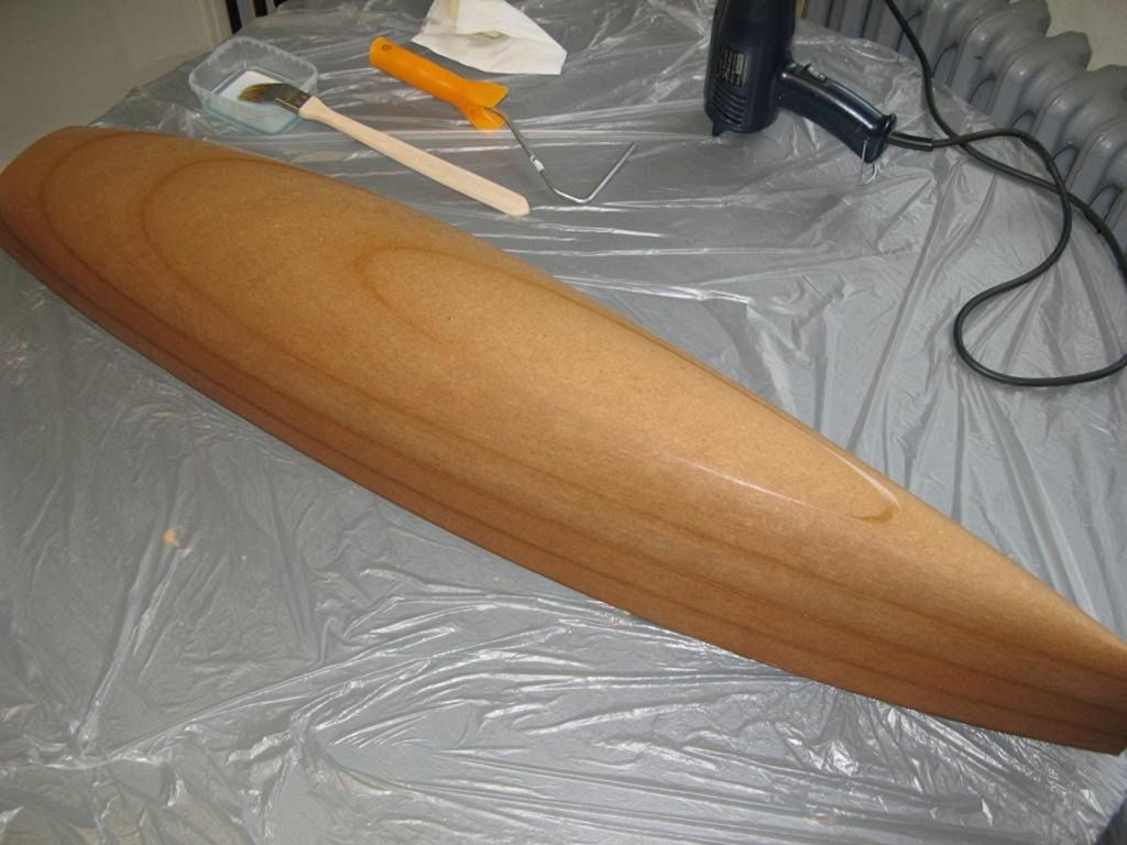 Takže asi po dvou hodinách jsem nahrubo oškrábal špachtlí trup a pak začalo nové kolečko broušení, laminování a tmelení (bílým BODY!) a k úplné spokojenosti. No vlastně jsem si mohl 14 dnů hrát, jak jsem výše uvedl, ale tentokrát bylo mé hraní okořeněno mnoha nepublikovatelnými výrazy a utvrzením se o skutečnosti, že vlastní zkušenosti jsou neocenitelné.