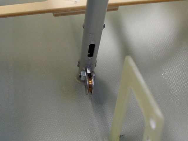 Ještě jedna dvojkladka je na šňůře mezi kladkou serva a pevným koncem otěží.