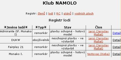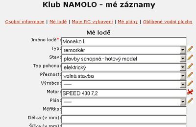 Největším problémem nových stránek je jejich naplnění. Po zvážení všech možností jsem se nakonec rozhodl, že začneme na zelené louce a všechny členy Klubu NAMOLO! poprosím, aby je znovu naplnili. Bude se jednat o jakousi inventůru údajů, které jste v průběhu let uvedli. Tím, že uvedete některé údaje o sobě a svých modelech potvrdíte svoje členství v Klubu NAMOLO! a pomůžete tak vytvořit jedinečnou databázi lodních modelů v ČR.